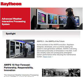 The driving force of the bandwidth expansion and hardware upgrade is to support the dissemination of additional data products over the SBN/NOAAPort such as dual polarization radar products, GOES and POES satellite products, and analysis and forecast products. In addition to the expansion, the team also transitioned the SBN to a Digital Video Broadcasting–Satellite–Second Generation service, and provided for the incorporation of NOAA Weather Wire Service broadcasts into the SBN as part of the Weather Radio Improvement Program. Since 2005, Raytheon has been NOAA’s partner for the operations, maintenance and evolution of AWIPS, providing the integrated mission services required to sustain and enhance system performance. AWIPS is used by the NWS to ingest, analyze and disseminate operational weather data including time-sensitive, high-impact warnings that save lives and safeguard property.