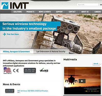 IMT consolidated and expanded its production capabilities in November 2010. The new 65,000-square-foot facility in Mt. Olive is home to IMT’s research and development, application engineering, manufacturing assembly, electronic testing and customer technical support services. IMT’s range of products for commercial and government customers include wireless camera systems, portable video transmit and receive systems, airborne video downlinks, and central and diversity receivers.