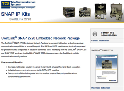 The Company has also received an 11-month extension to its U.S. Army World-Wide Satellite Systems (WWSS) Indefinite Delivery Indefinite Quantity (IDIQ) contract. Initially issued as a five-year, $5 billion multiple award contract in 2006 and expected to end later this month, the ordering period under the WWSS contract has been extended 11 months to July 27, 2012, with all deliveries required to be completed by August 28, 2012. As a result of the extension, TCS will continue to offer turn-key, single source, quick reaction solutions for emerging communications requirements worldwide in support of all federal missions. Such solutions include TCS’ entire SwiftLink® suite of products and services that support secure, deployable communications. TCS leads a team of specialized satellite communications and logistics companies that provide a full range of operations, management and logistics products and services for the WWSS program. Over the past five years, the TCS WWSS Team demonstrated its proven ability to support today’s Warfighter with Commercial-Off-The-Shelf (COTS) products, services and integration technologies. Key elements of the contract extension continue to include: system integration; systems engineering; operations; maintenance; software support; program management; logistics; technical field assistance; test and evaluation; modeling and simulation; information operations and assurance support; training; depot support and administrative support to troops and personnel stationed around the globe. With the contract extension, TCS’ highly successful SIPR NIPR Access Point (SNAP) VSAT and Wireless Point-to-Point Link (WPPL) Major Programs can continue to be awarded from the WWSS contract vehicle. The WWSS program is managed by the Program Management Warfighter Information Network-Tactical (PM WIN-T) Joint Program Management Office.