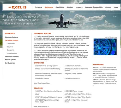 IDG builds on the legacy Exelis has established in the field of GPS and PNT. Exelis payloads and payload components have been aboard every GPS satellite for almost 40 years. Today, Exelis is involved in building tomorrow’s Global Positioning System, developing and integrating the navigation payloads for GPS III. Exelis is also providing navigation processing components, precision monitor station receivers, and key components of the system security design for the GPS Operational Control System, also known as GPS OCX.