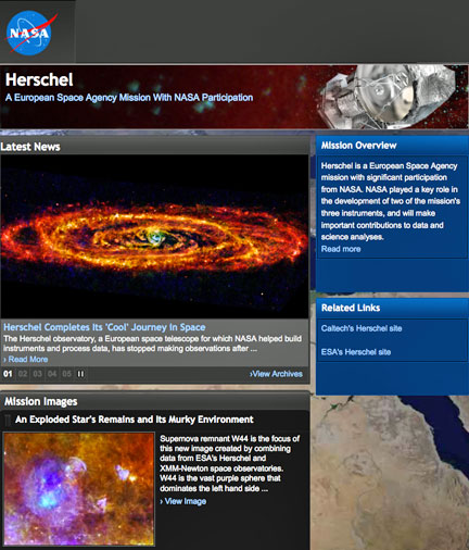 “Herschel gave us the opportunity to peer into the dark and cold regions of the universe that are invisible to other telescopes,” said John Grunsfeld, associate administrator for NASA‘s Science Mission Directorate at NASA headquarters in Washington. “This successful mission demonstrates how NASA and ESA can work together to tackle unsolved mysteries in astronomy.”