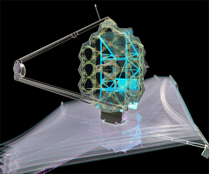 This x-ray diagram of NASA’s James Webb Space Telescope shows where the backplane support frame (BSF) is in relation to the whole observatory. The BSF is the backbone of the observatory, is the primary load carrying structure for launch, and holds the science instruments.