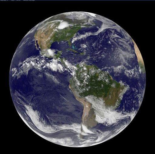 A photo released by the GOES-13 weather satellite reveals a sparkling blue Earth dotted with clouds to mark the northern summer solstice—the official start of summer in the north. The satellite is operated by the National Oceanic and Atmospheric Administration.