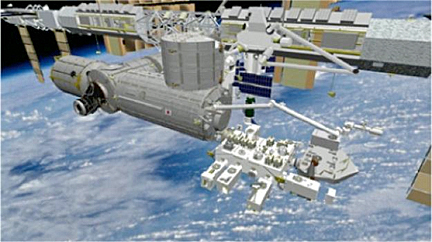 Computer model showing the Japanese Experiment Module on the International Space Station. (Credit: JAXA)