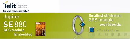The Jupiter SE880 is Telit’s ultra-compact GPS receiver module for applications in the commercial, industrial, and consumer segments including wearable and handheld devices. The miniature 4.7×4.7mm LGA (Land Grid Array), SiRFstarIV™-based receiver module employs leading 3-D SiP component embedding technology to achieve best-in-class performance in all dimensions critical for regular or size-constrained GPS applications.