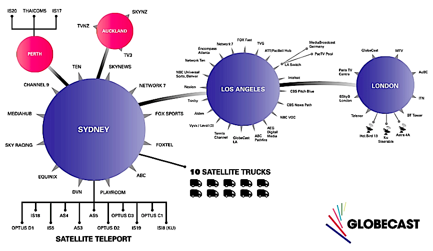As part of the international Globecast Group, and with a fiber network directly connecting Australia, New Zealand, the USA and Europe, Globecast Australia utilizes a video-centric fiber network that connects the world's leading media and business hubs.