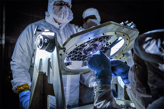 [SatNews] In the accompanying photo, NASA engineers inspect a new piece of technology developed for...