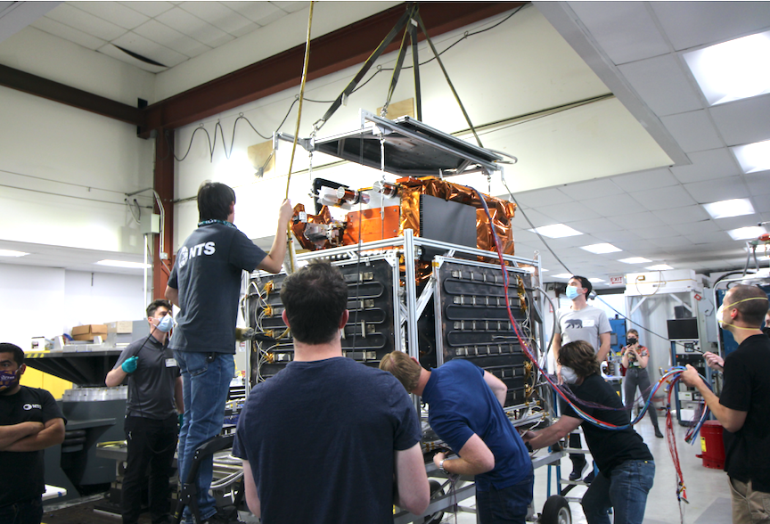 Astranis succeeded on both counts. Astranis made use of a highly-specialized vacuum chamber at an NTS Space center-of-excellence facility in Los Angeles, California. This thermal-vacuum chamber, paired with a custom-designed shroud, was able to simulate both extreme hot and cold temperatures needed for qualification testing. The chamber was pumped down to near vacuum, and Astranis engineers then powered up the vehicle, ran through a series of functionality checks, and began to operate the vehicle as the test environment was adjusted across a wide range of temperatures. The spacecraft was exposed to pressures as low as 7 x 10-6 Torr (about one one-hundred-millionth the density of Earth’s atmosphere).