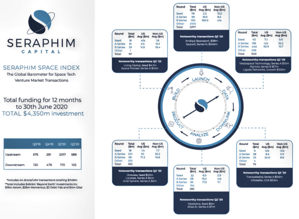 Seraphim Capital publishes a quarterly index which identifies the global VC investment in the space tech domain and have just reviewed the June 30, 2020, figures for the Seraphim Space Index to better understand the impact of the COVID pandemic on the appetite for venture investment in the global space technology domain — please see the graphic below on the outcome for the year/quarter and a more detailed narrative below.
