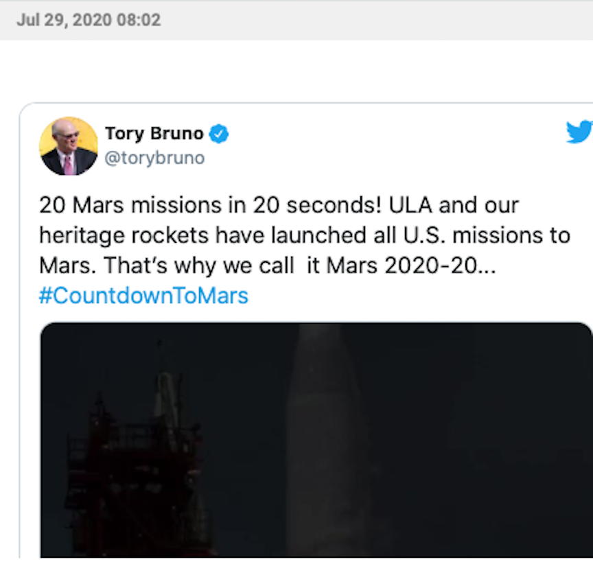 So far, so good, in terms of the preparation and plans of NASA’s Mars 2020 to launch on Thursday, July 30, at 7:50 a.m. ET on ULA‘s Atlas V 541 rocket from Cape Canaveral’s Air Force Station Complex-41. Along for the journey is the Perseverance Rover and the Ingenuity helicopter … destination Mars!