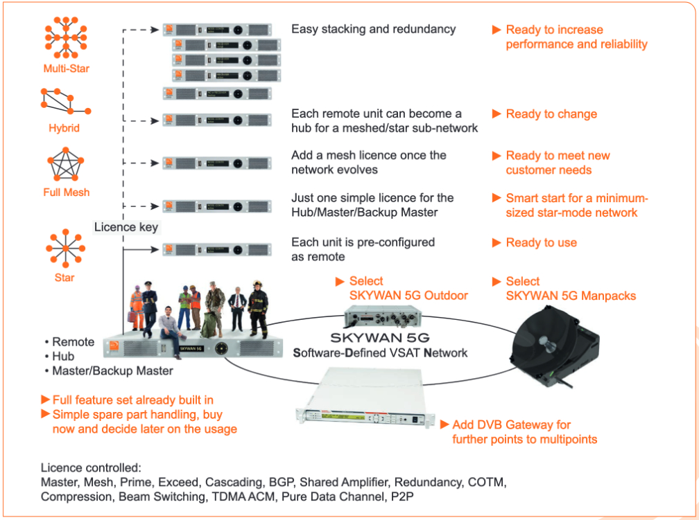 “The game changing SKYWAN 5G Release 2.0 is here,” said Michael Weixler, Head of Product Management. “True-Mesh ACM with intelligence integrated into the SKYWAN nodes automatically gives the customer maximum performance for any topology and network design. Combined with the new Point-2-Point waveform on the same platform, customers decide when to re-configure their networks based on actual connectivity needs,“ Weixler continued. “Flexibility and security throughout represent a whole new level for VSATs and a quantum leap for SKYWAN 5G.”