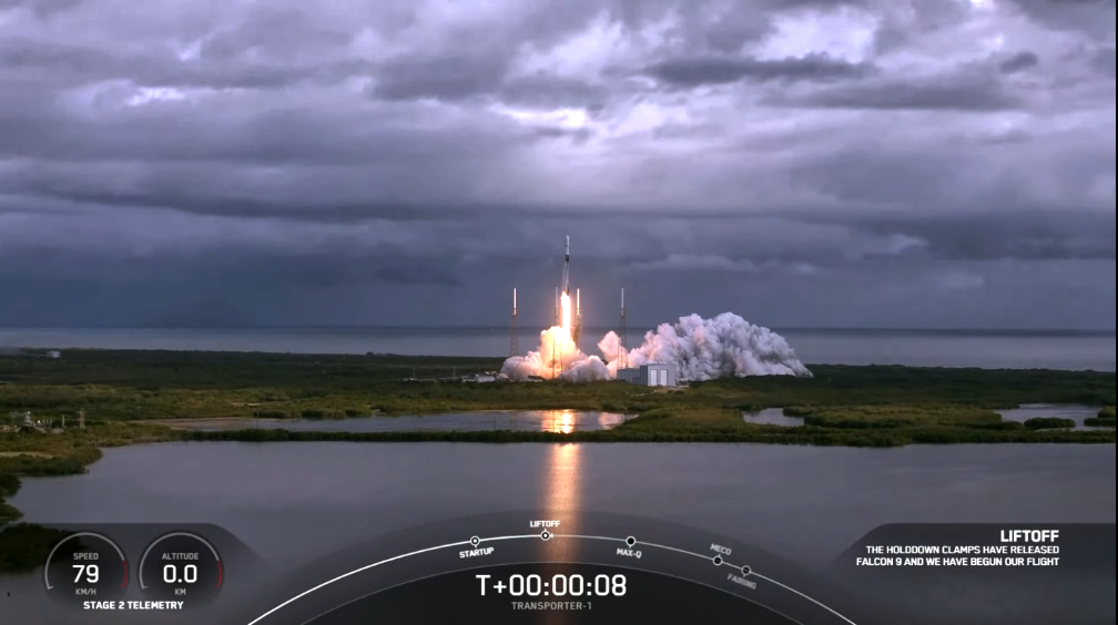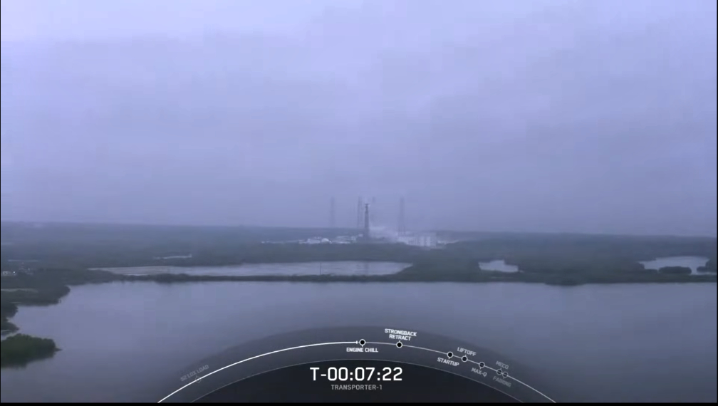 Due to surface electrical fields, today’s launch of the SpaceX Transporter-1 mission has been scrubbed. The 70 m tall Falcon 9 rocket is sound and no anomalies have been reported for any of the launch elements.