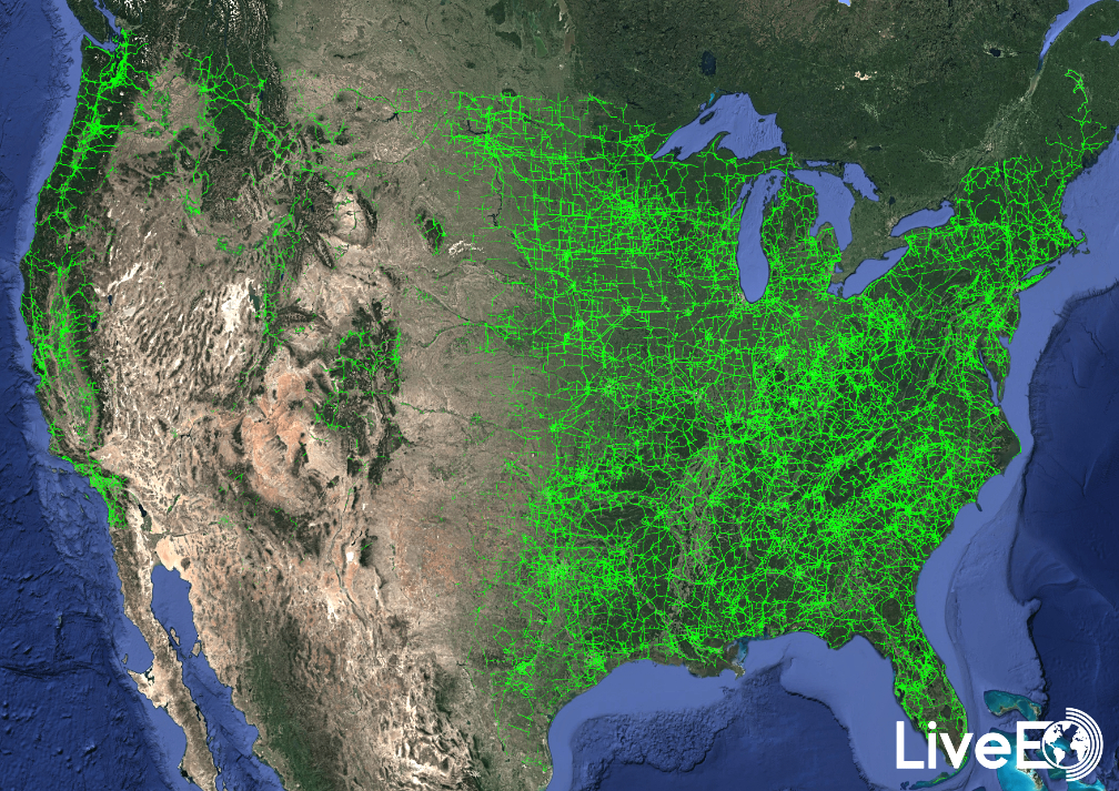 The goal of this large-scale analysis was to demonstrate LiveEO’s analytic capabilities to a North American audience. In total, more than 15,000 public satellite images were used to evaluate risk to 574,000 miles of electricity lines. (Details about the analysis can be found at www.live-eo.com/us-power-transmission-grid-analysis)