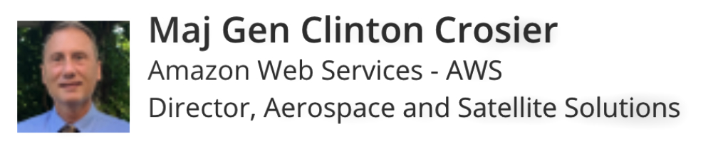 General Crosier was responsible for aerospace and satellite services with the USAF and, during his 33 years of putting satellites into orbit, space planning and budgeting, he was also involved in the standup of the U.S. Space Force (USSF), the first new arm of the military in 72 years. He joined Amazon Web Services (AWS) as the Director, Aerospace and Satellite Solutions.