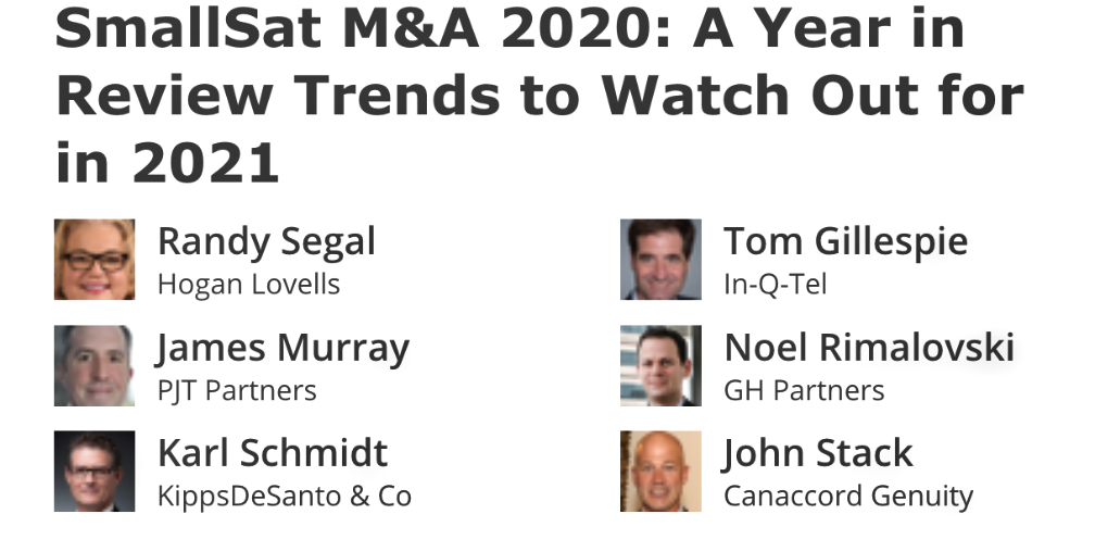 Mr. Rimalovski answered that small companies that are stretching for capital investment must be quite careful if they plan on doing business in western world — foreign ownership can be an impediment and if that path is taken, they must take into account that there will be a lot of legal fees. Mr. Stack succinctly stated, “Team, Tech and Traction, with a focus on the last ‘T’.” He will be excited to finally see company CEOs and management teams get their place in the sun, as they have imbued their companies with their own blood, sweat and tears into their firms. Finally to be seen will be the acknowledgement of their hard work. Mr. Schmidt emphasized that the space M&A markets couldn’t be any hotter and that there will be more buying and more exits in 2021. For Mr. Gillespie, this is going to be a truly exciting year, with the government really heading into commercial space. He also believes there will be a number of company exits via SPAC, which is really healthy for the industry.