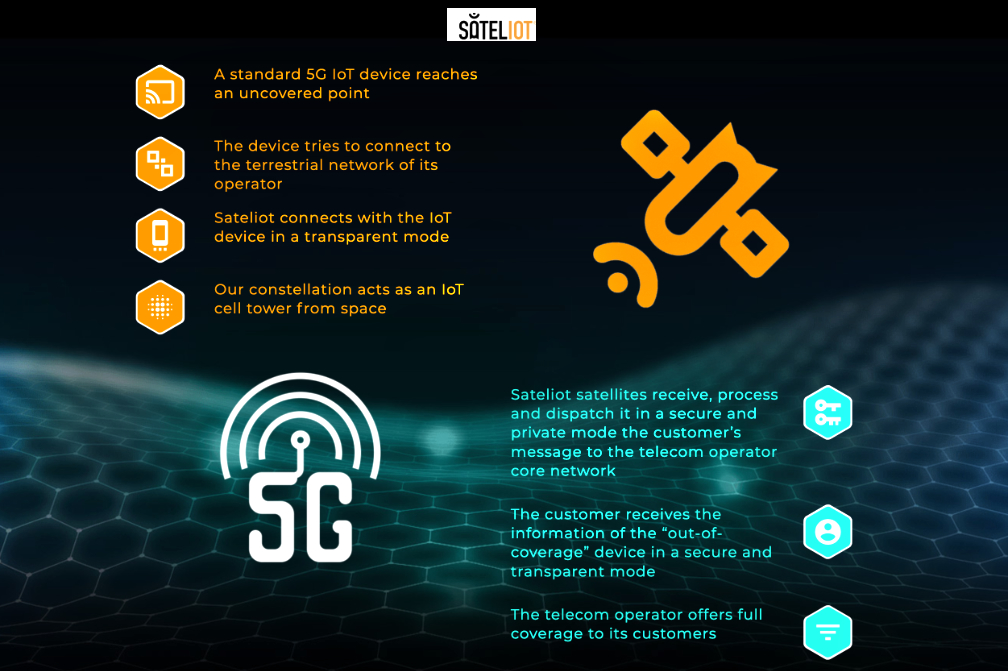 Sateliot is the first satellite telecommunications operator that will provide global and continuous connectivity to all the elements that will make up the universe of the Internet of Things (IoT) -such as the connected car or home- under the 5G protocol. Thanks to a constellation of state-of-the-art nanosatellites, located at low altitude that act as mobile cell towers, Sateliot is the perfect complement to large telecommunications companies by providing the necessary infrastructure where terrestrial technologies do not reach. More information in our web, Twitter and LinkedIn.