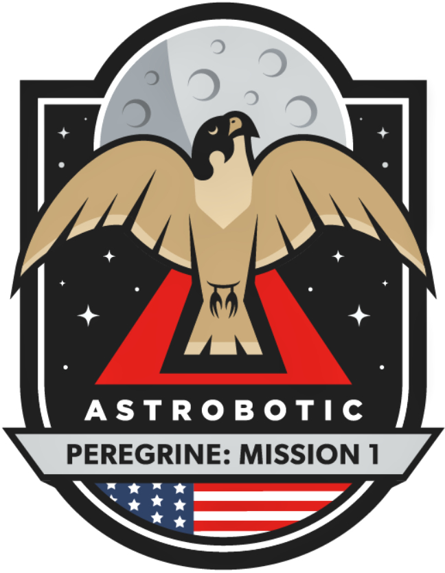 “We wanted to create a clean and modern design, but also reference previous historic missions. Using our Peregrine bird imagery was a nod to NASA’s Apollo 11 patch – highlighting the historic significance and firsts that our mission accomplishes,” said Sarah Huth, Astrobotic’s graphic designer.