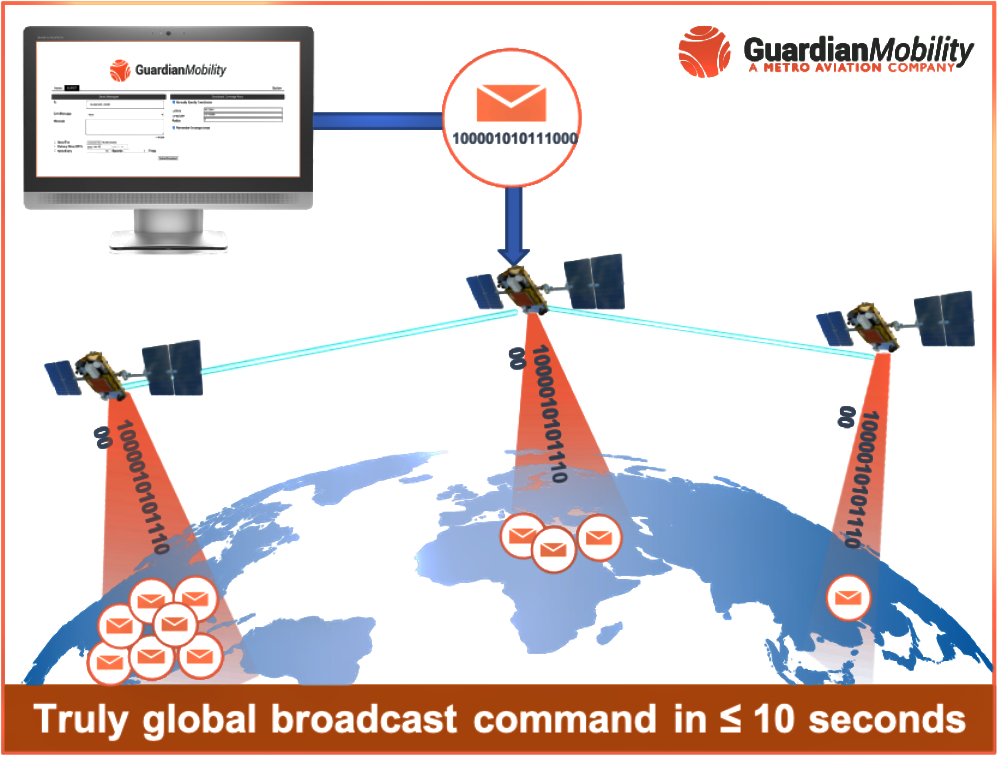 Guardian Mobility offers a new service that allows for small, simultaneous broadcast messages to be sent to thousands of miniature devices anywhere in the world, via the Iridium satellite network.