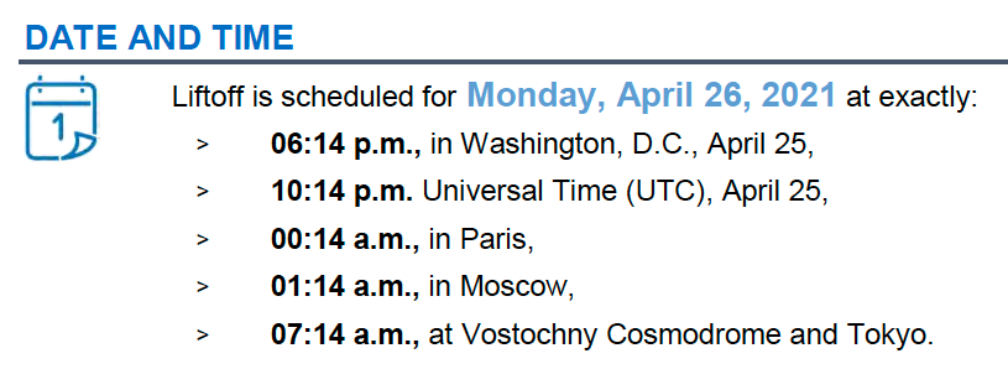 The next Arianespace mission is planned from Vostochny Cosmodrome with Soyuz on April 26 and is scheduled to deliver 36 satellites into orbit.