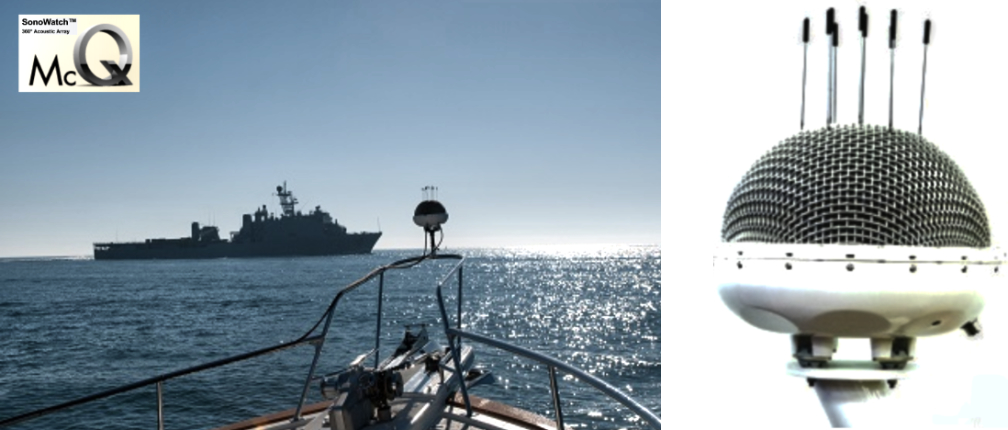 McQ is providing SonoWatch to a couple of prime contracts for use in an unmanned surface vessel (USV) for a Department of Defense customer. SonoWatch is compact, sealed for operation in maritime environments and ruggedized for the shock and vibration experienced on water. SonoWatch provides high fidelity acoustic signal capture with advanced processing to provide accurate signal characterization, even in the presence of engine noise and the wind/rain.