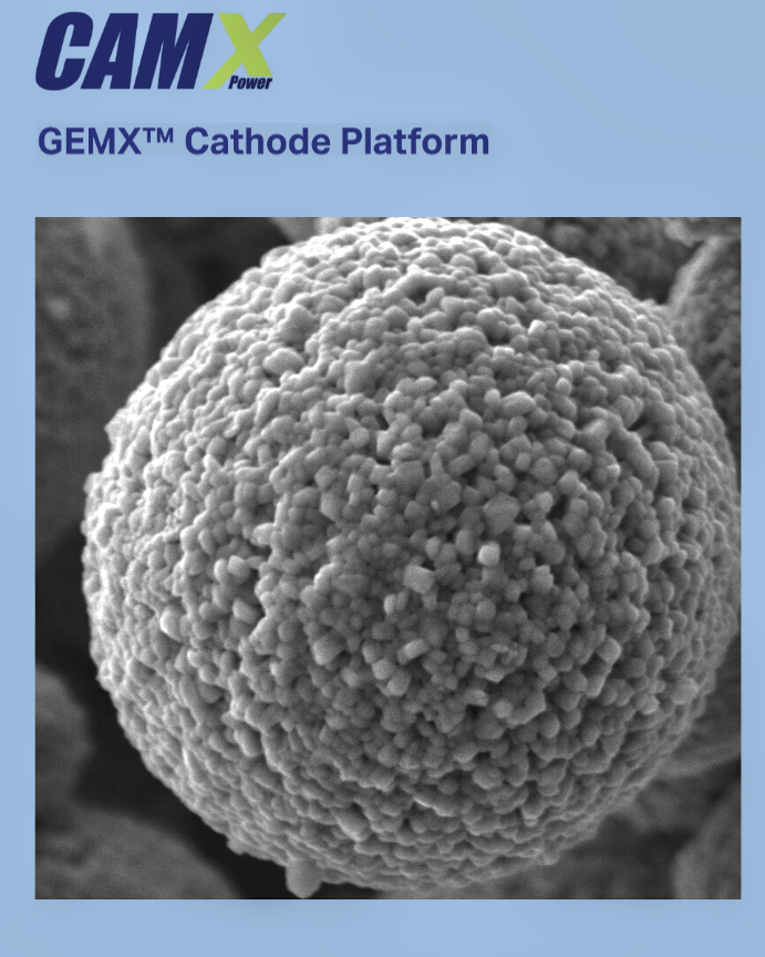 These batteries will use CAMX’s globally patented and already commercialized high-nickel cathode platform GEMX® as well as other company proprietary technologies. GEMX applications to currently popular chemistries have been developed and branded as gNMC, gNCA, gNMCA and gLNO. GEMX has been licensed by Johnson Matthey and Samsung SDI.