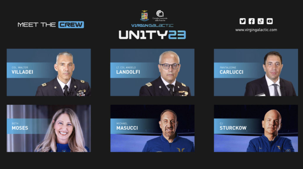 The “Unity 23” mission will be the 23rd flight for VSS Unity and will carry three paying crew members from the Italian Air Force and the National Research Council. The goal of the mission is to evaluate and measure the effects of the transitional phase from gravity to microgravity on the human body. Other payloads on board will study the effect of the microgravity environment on a range of chemical and physical properties. By testing and evaluating physiological and technological responses in sub-orbital flight, the mission aims to produce insights relevant to current and future spaceflight systems and technologies.