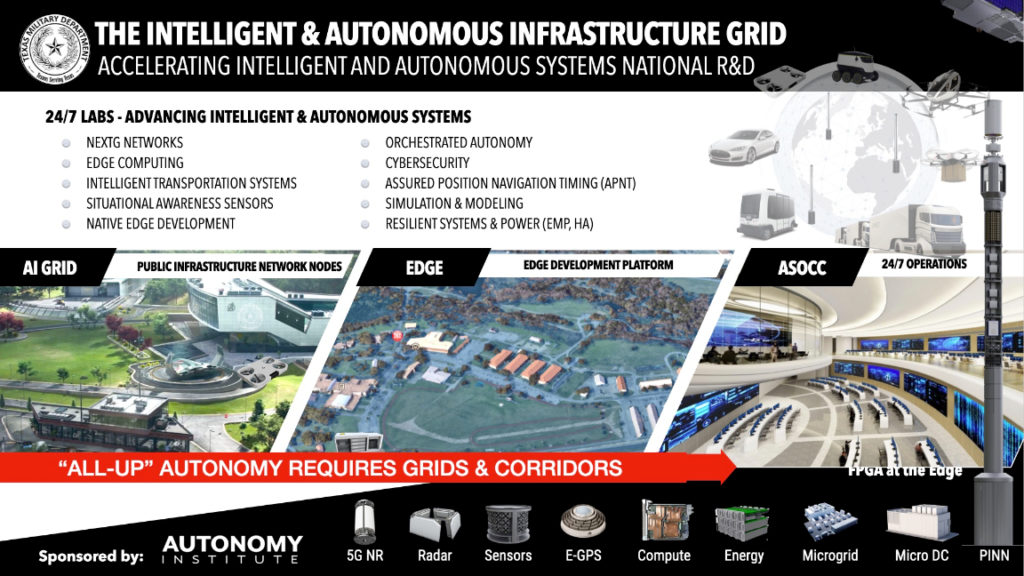 “We are excited to support the launch of the Autonomy Institute Alpha Lab. Camp Mabry and the Texas National Guard have become a center of gravity for research and innovation. We are continually looking to leverage and accelerate the adoption of new commercial technology and novel architecture deployments like the PINNs. This Lab will help bring the concept of the Internet of Military Things to fruition by acting as a pathfinder for our systems to connect, share data, and learn. As a nation, we need to move faster if we are to meet the challenges of tomorrow,” said Lt. Col. Alex Goldberg, Southwest Region Engagement Lead for the Defense Innovation Unit.