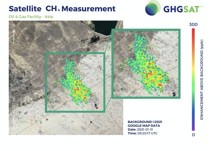 In comparison to existing greenhouse gas observing satellites worldwide, GHGSat’s satellites provide 100 times higher spatial resolution at 10’s of meters pixel size and the smallest detection thresholds of approximately 100kg/hour. GHGSat is differentiated for its technology in pinpointing the exact source of methane emissions at the facility level such as compressor stations, well pads, and pipelines in the Oil and Gas sector.