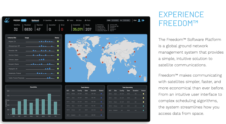 ATLAS’ mission is to go beyond hardware modernization by using software to optimize their services. Using the Freedom™ software platform, ATLAS has developed its software to automatically analyze trends in its communications network. This means that standalone metrics such as site reliability, ground station infrastructure performance, and antenna scheduling can be viewed as a whole.
