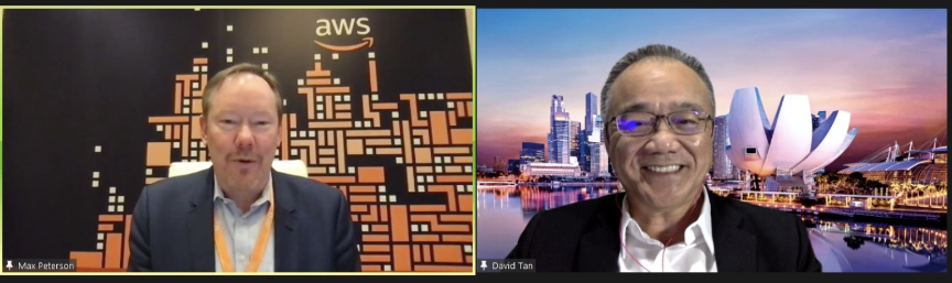 Max Peterson, vice president of worldwide public sector at Amazon Web Services (AWS), and David Tan, executive director at Office for Space Technology & Industry (OSTIn), sign a Statement of Strategic Intent and Cooperation between AWS and OSTIn in a virtual ceremony.