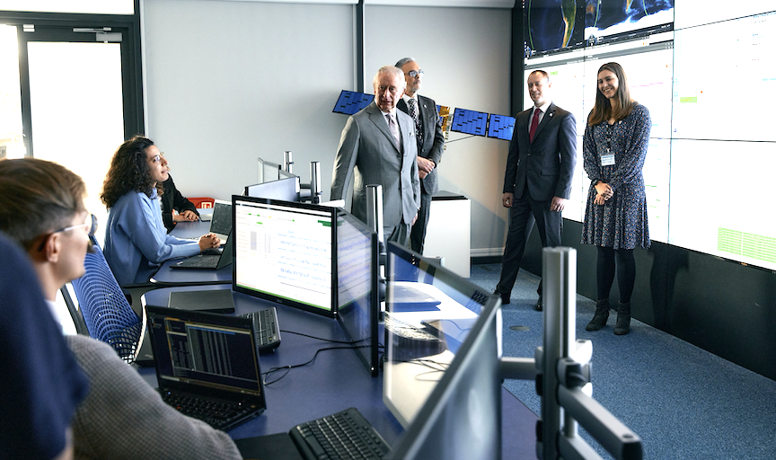 His Royal Highness gathered with leading industry representatives from OneWeb and the Satellite Applications Catapult, together with Minister for Science, George Freeman MP, and Paul Bate, CEO of the UK Space Agency. The group toured the ELSA-d Mission Control Centre and met with a group of young engineers from Astroscale who are breaking new ground to provide a solution to the growing problem of space debris, an issue that puts critical satellite infrastructure and astronauts based on the International Space Station (ISS) at serious risk.