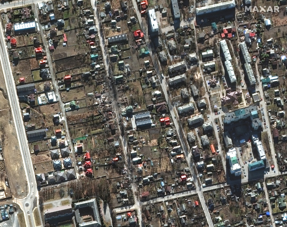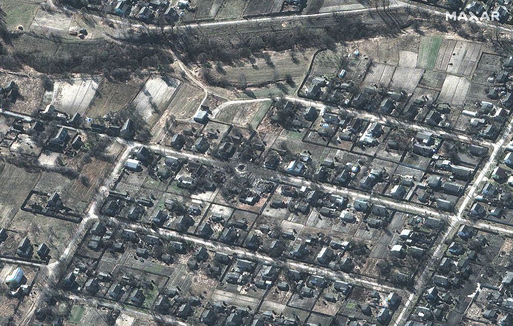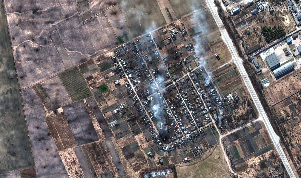 In the meantime, Maxar analyzed more of their recent satellite imagery that three of Maxar’s high-resolution satellites collected on February 28th (encompassing more than 8,000 square kilometers) and focused in on a number of Ukrainian cities and villages.