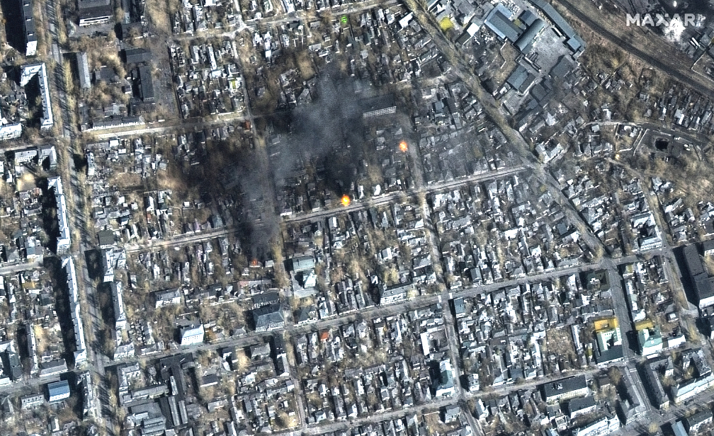 New Maxar satellite imagery collected on March 14th reveals additional damage throughout the southern Ukrainian city of Mariupol.