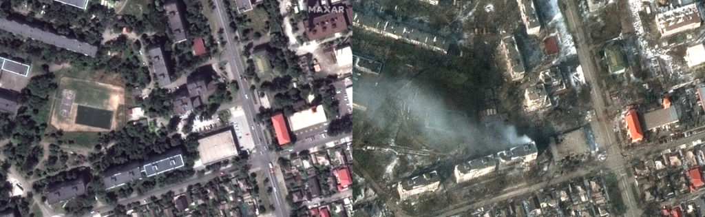 Maxar collected new satellite imagery on Saturday, March 12th, of Mariupol, Ukraine, that reveals extensive damage to civilian infrastructure and residential buildings throughout the city.