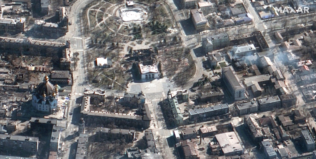 Maxar also collected new satellite imagery on March 19th of Mariupol, Ukraine, that shows the aftermath of the airstrike on the Mariupol Drama Theater.