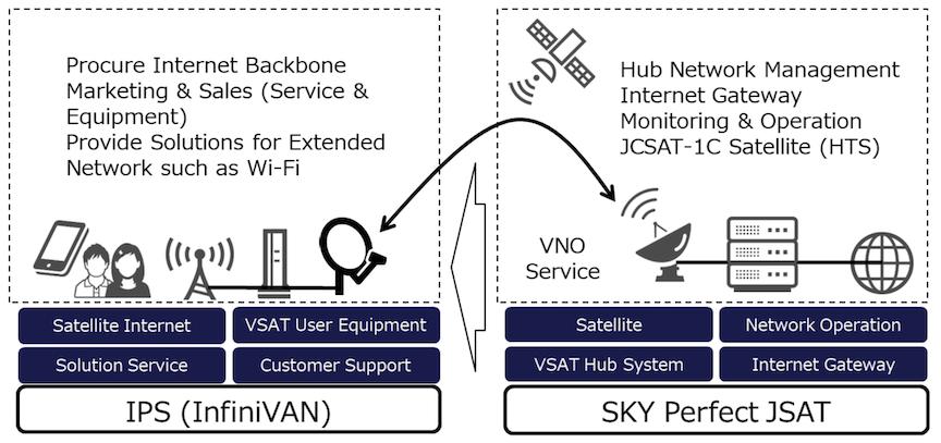 IPS, Inc.’s President and Chief Executive Officer, Koji Miyashita, and SKY Perfect JSAT Corporation Representative Director, President & Chief Executive Officer, Eiichi Yonekura announced initiation of SKY Perfect JSAT’s satellite broadband service to InfiniVAN, Inc. consolidated subsidiary of IPS, in the Philippines.