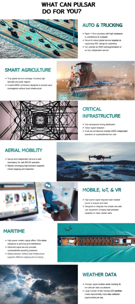 Following the Launch of Huginn, the Xona team is shifting its focus to the second demonstration mission as well as the development of the Block I Pulsar system. The final Pulsar constellation will consist of several hundred satellites in LEO, delivering secure and robust precision PNT services designed to meet the needs of advanced applications such as self-driving cars, precision agriculture and construction, augmented reality, critical infrastructure, and many others.