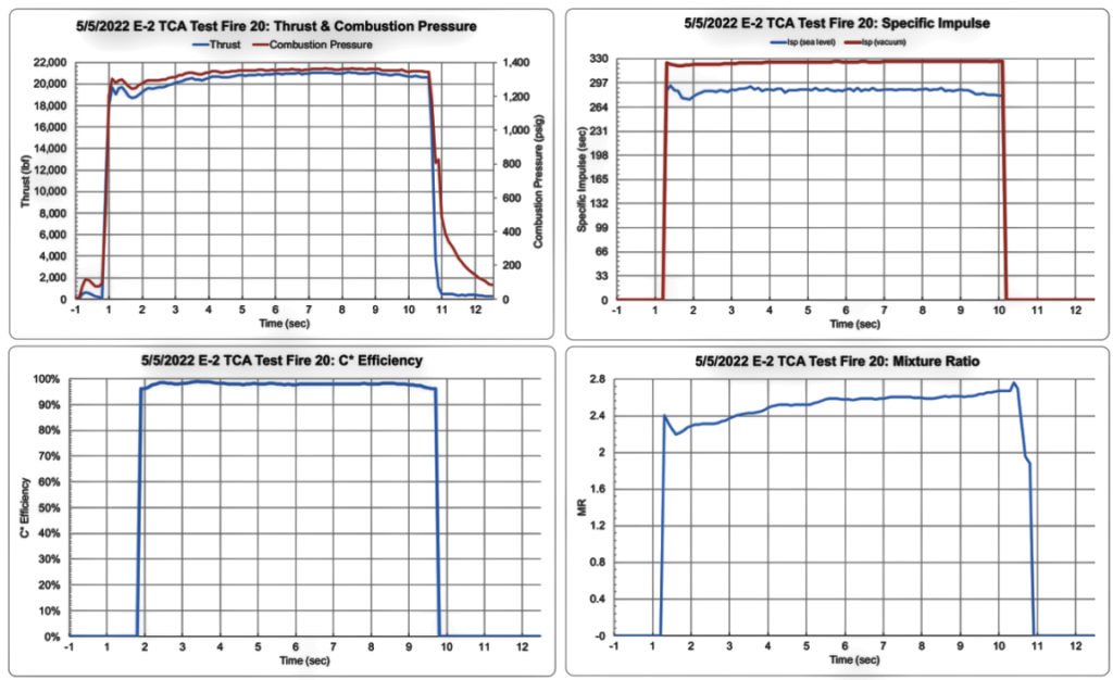 Test data evidence from one of the May 4, 2022 E-2 test fire at NASA Stennis Space Center: