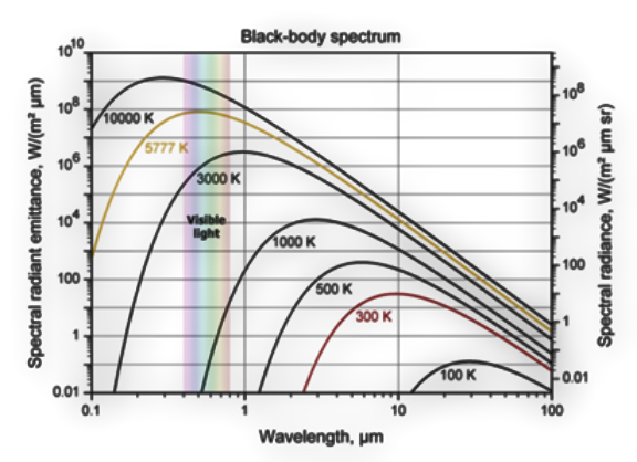 All objects at a temperature above absolute zero (-273.15°C) emit thermal radiation. The company knows that the amount and wavelength of this radiation is dependent on the temperature of the object, and an object that emits radiation “perfectly” – according to the lines on the curve in the image below – is known as a black body.