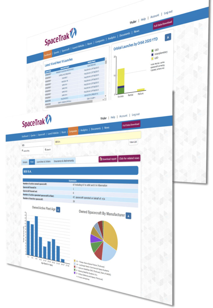 - Seradata’s SpaceTrak, the industry’s most authoritative database and analytical system, covering all launches and satellites since Sputnik in 1957, plus future planned spacecraft/launches.