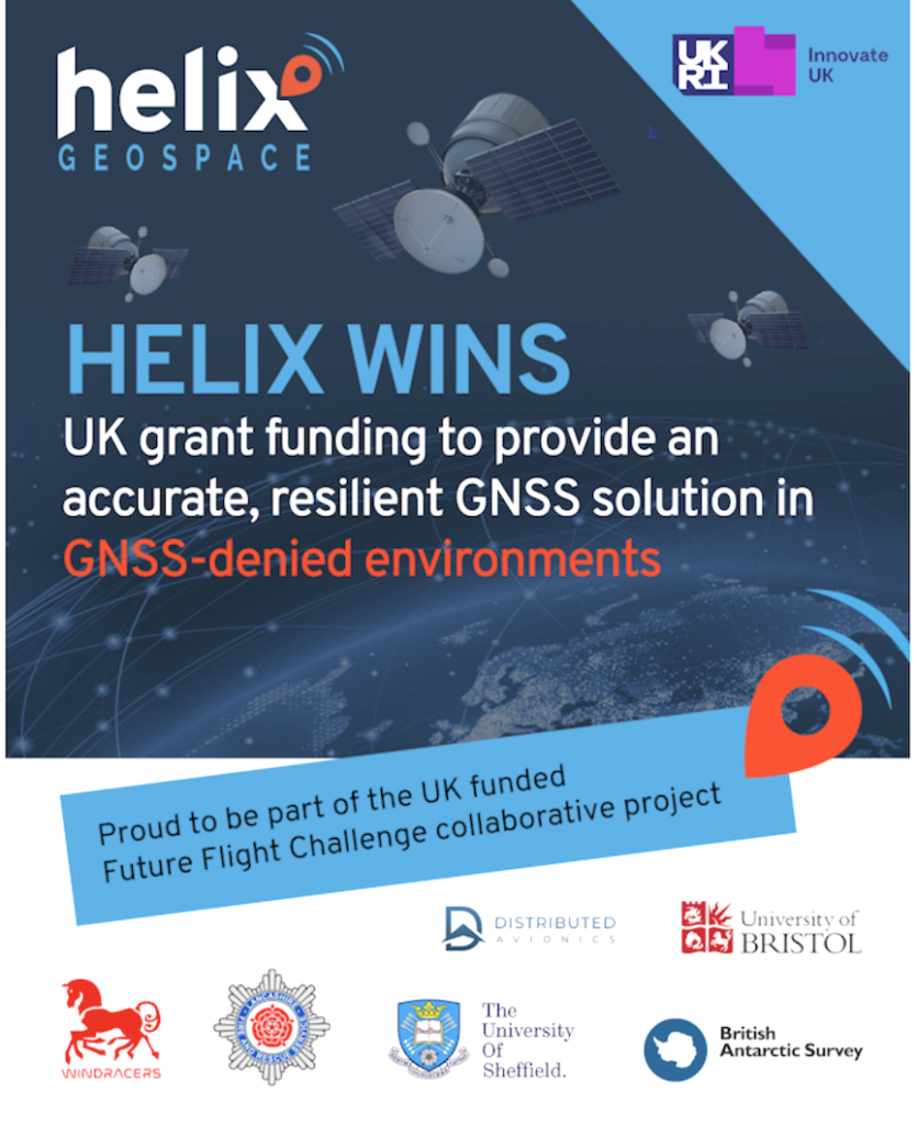 Helix Geospace will participate in the ‘Future flights challenge phase 3′ project along with Windracers, Distributed Avionics, the University of Bristol and University of Sheffield. The Innovate UK funded project will demonstrate how large unmanned systems (with a maximum take-off weight of 450kg) can be used to solve environmental protection concerns in GNSS-denied environments, functioning in swarms and using a combination of digital twinning, computer vision, and real-world flight testing.