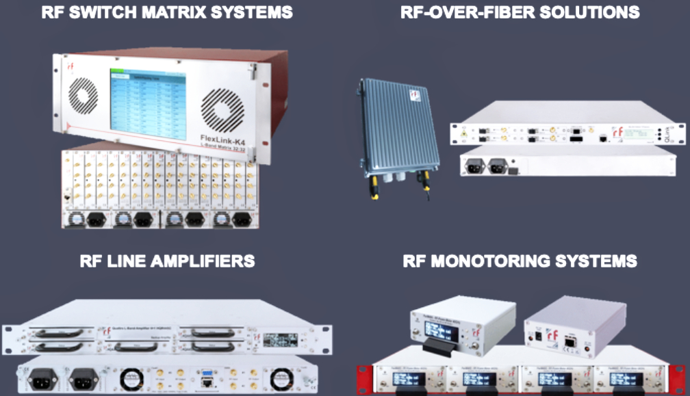 RF-Design specializes in developing, manufacturing and providing professional RF equipment for the international Satellite, Broadcast, Broadband and Telecom communications industry. The company’s product range includes various Switch Matrix systems, RF-over-Fiber solutions, RF Line Amplifiers, RF Monitoring systems, Switches, Redundancy Switches, Splitters/Combiners, as well as custom-made solutions especially designed and optimized for individual applications and requirements. All of the firm’s products are developed, manufactured, tested and approved in the RF-DESIGN facilities in Lorsch, GERMANY.