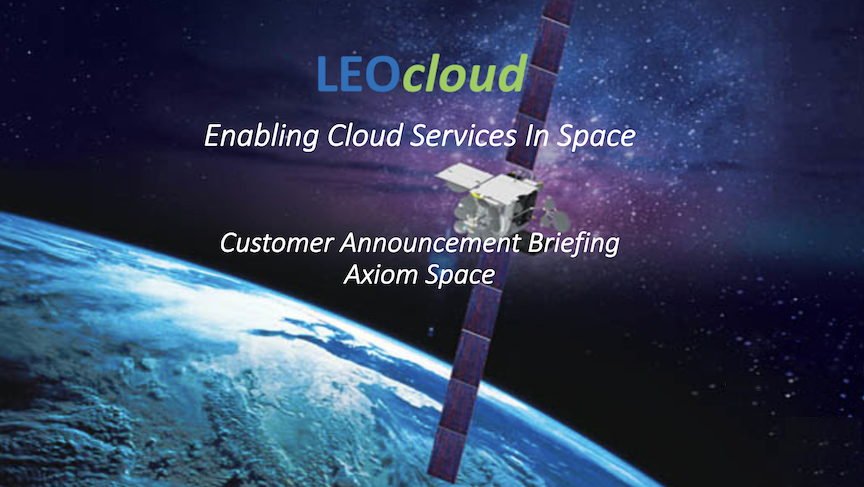LEOcloud announced they have entered into a Strategic Collaboration Agreement with Axiom Space Inc., the developer of the world’s first commercial space station, for the purpose of developing and delivering space-based cloud services.