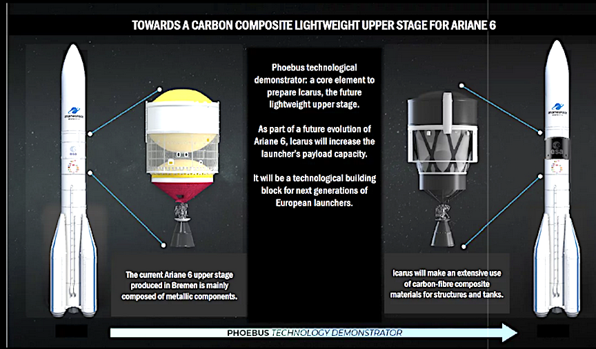 PHOEBUS (Prototype for a Highly OptimizEd Black Upper Stage) is a key program on the path to a further optimized upper stage called ICARUS (Innovative Carbon ARiane Upper Stage). PHOEBUS is built of carbon composites rather than metal, leading to lower cost and lower weight. It will increase payload capacity and thus contribute to a more sustainable use of resources.