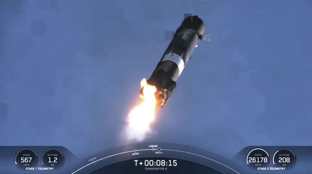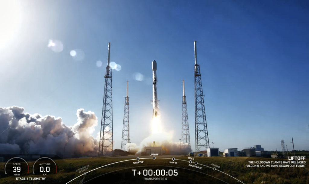 A Falcon 9 launched the company’s Transporter-6 mission from Space Launch Complex 40 (SLC-40) at Cape Canaveral Space Force Station in Florida.