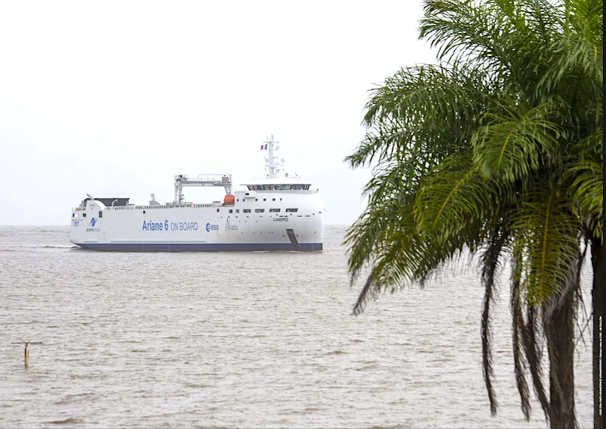 Canopée, the new Ariane 6 transport ship, reached Pariacabo harbor in French Guiana for the first time on January 13, 2023, after leaving Rotterdam in the Netherlands on December 27, 2022, on its very first voyage to French Guiana. This first transatlantic crossing marks the end of sea trials.