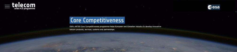 * ESA’s ARTES (Advanced Research in Telecommunications Systems) Core Competitiveness programme element is dedicated to the development, verification and demonstration of technologies and products for the satellite telecommunications market: https://artes.esa.int/core-competitiveness