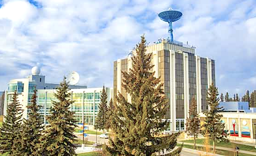 The Alaska Satellite Facility operates six satellite dish antennas, four of them for NASA, that downlink Earth-observing remote sensing data from polar-orbiting government and commercial satellites. Among those antennas is the iconic blue dish atop the Elvey Building, home of the Geophysical Institute.