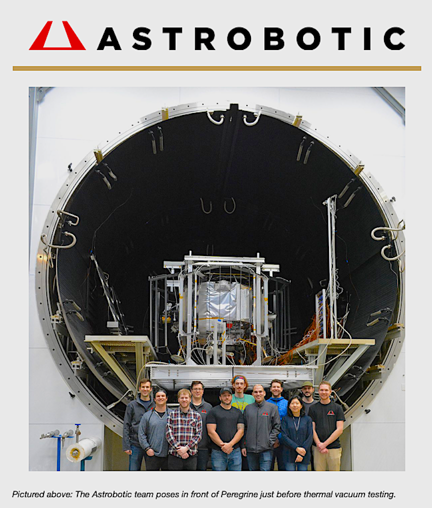 The final hurdle, thermal-vacuum (TVAC) testing, proved that Peregrine can survive and operate in the thermal and vacuum conditions of space. The spacecraft was subjected to extreme hot and cold temperatures in the thermal vacuum chamber to simulate conditions during its mission. All spacecraft components were functionally tested as well to demonstrate flight-like operations.