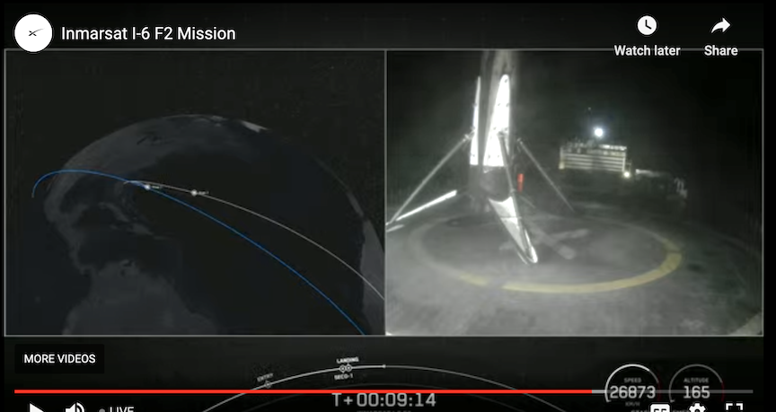 Success again for SpaceX this time in Florida at night at Cape Canaveral AFS as Inmarsat 6-F2 successfully launched from Falcon 9.